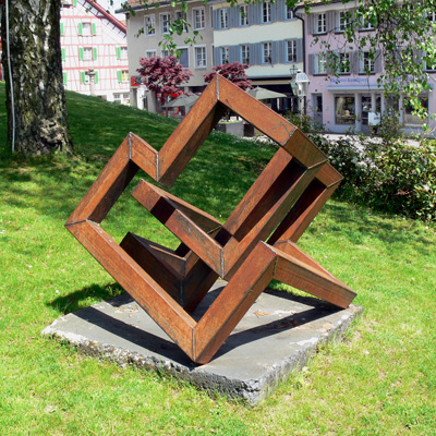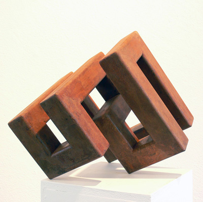 die werke zum thema "begegnung" haben keine expliziten titel mehr. ich verwende die bezeichnung "rb" und "rbb", räumliche begegnung, für die objekte und "relief b" für die reliefs. die nummer verweist auf die reihenfolge ihrer entstehung hin.